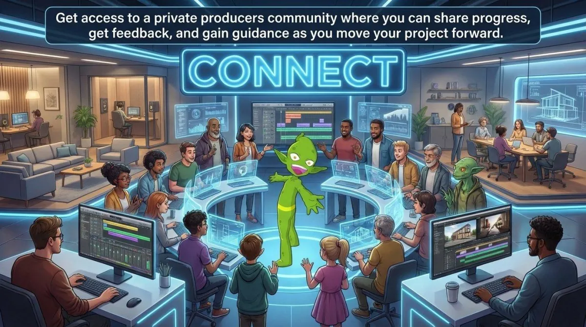 Get access to a private producers community where you can share progress, get feedback, and gain guidance as you move your project forward.